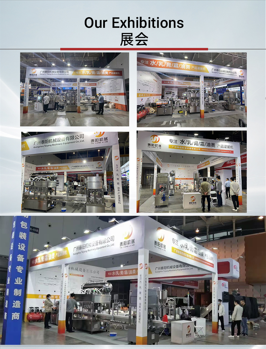 Taiyang Machinery Equipment Co., Ltd. sijaitsee Baiyunin alueella, Guangzhou Cityssä, Guangdongin maakunnassa. Yrityksemme on nouseva teknologiayritys, joka on erikoistunut tutkimuksen ja kehitykseen, valmistukseen, myyntiin ja kattavaan myynnin jälkeiseen täyttökoneiden, pakkauskoneiden, merkintäkoneiden ja muiden mekaanisten laitteiden palveluun. Keskity kuumien ja kylmien täyttö/sulkemisen/tiivistämisen/tiivistyksen/merkintöjen, kosmeiden, ihonhoitojen, meikin, pesun ja päivittäisen kemiallisen nestemäisen, voiton, voiton, kerman, vahan, Pesun ja Pesun ja Sealeds, Wotionsin, Sanojen, kerteiden, vahan, Pesun ja Pesun ja päivittäisten kemiallisten litikkojen merkinnöidensä automaattiset linja Vuoden 2017 perustamisesta lähtien, luotettavan laadun, kohtuullisten hintojen, ammatillisten palvelujen ja hyvän maineen kanssa, laitteemme on levinnyt yli 20 maakunnassa ja Kiinassa sijaitsevassa maakunnassa ja ulkomailla vietettyjä kaupunkeja. Taiyang Machinery -laitteiden laitteita on kehitetty eri asiakkaiden palautteen perusteella, ja se on kertynyt vuosien teollisuusteknologiaan ja on erityisen suosittu asiakkaiden kanssa. Olemme alan tunnetun "seurannan täyttömenetelmän" perustaja. Päivitämme jatkuvasti laitteita tehokkuuden ja vakauden parantamiseksi, jolloin asiakkaat voivat sijoittaa edullisin kustannuksin ja tuottaa tehokkaasti ja säästää samalla paljon työvoimaa.